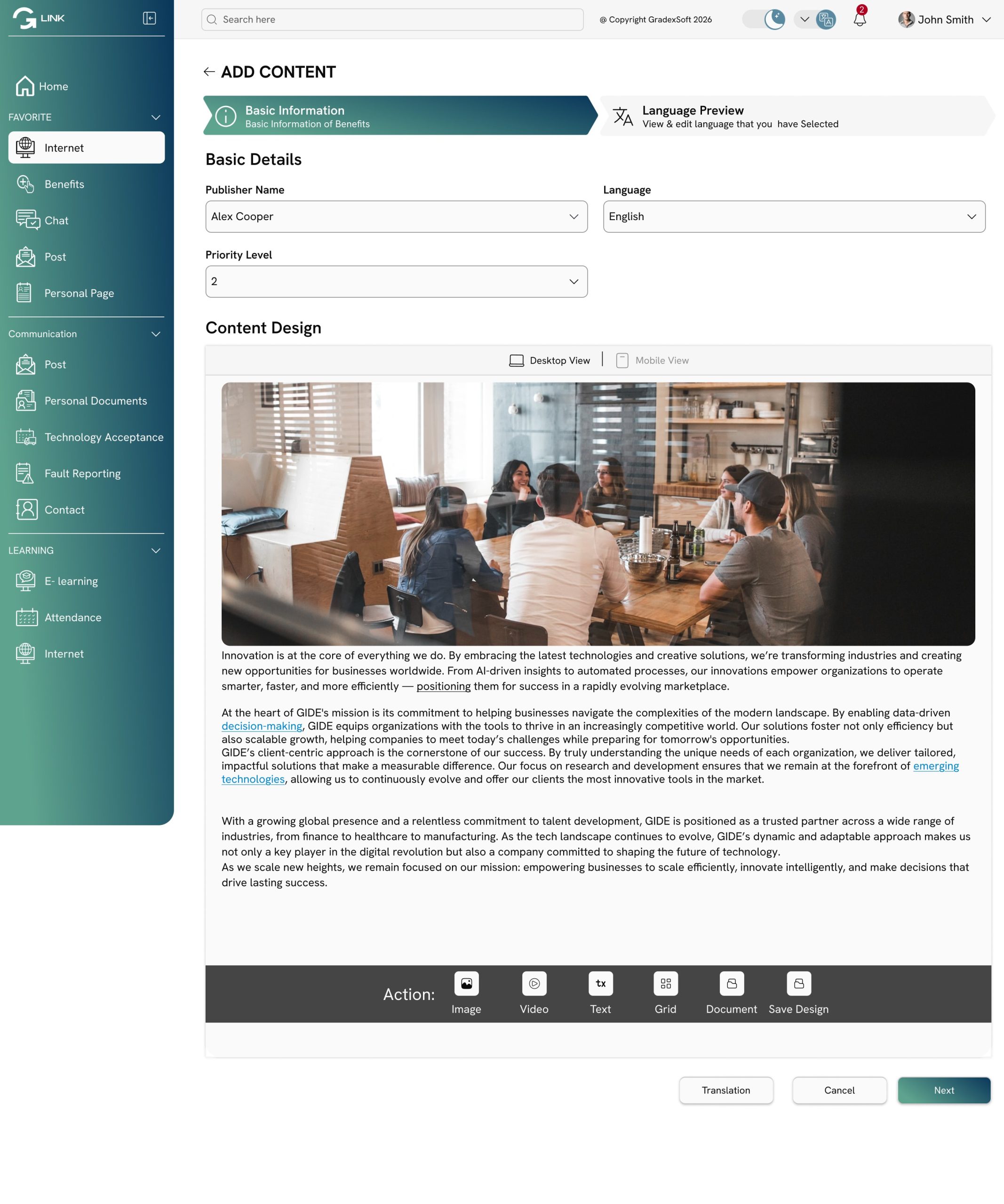 "GradexLINK has helped us connect teams across departments. Whether it's policy updates or training materials, everything is now accessible in one place."